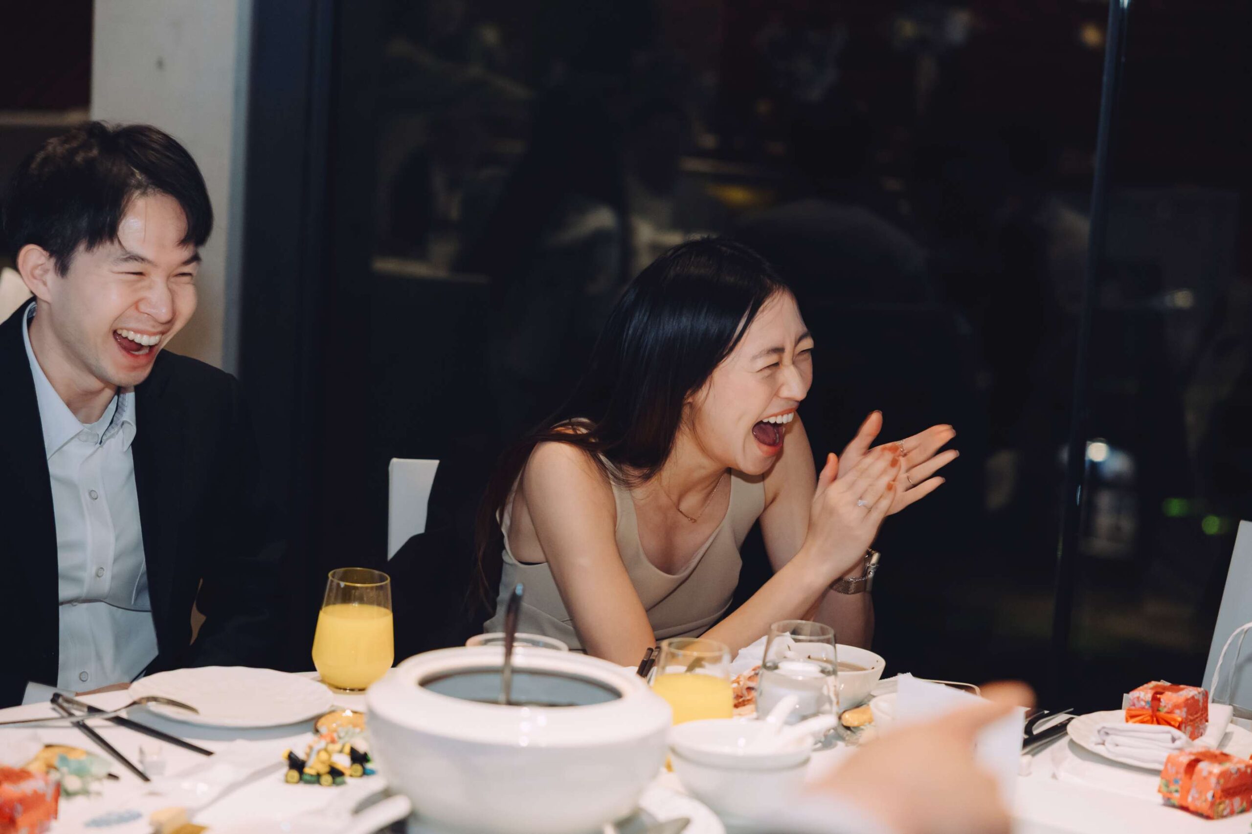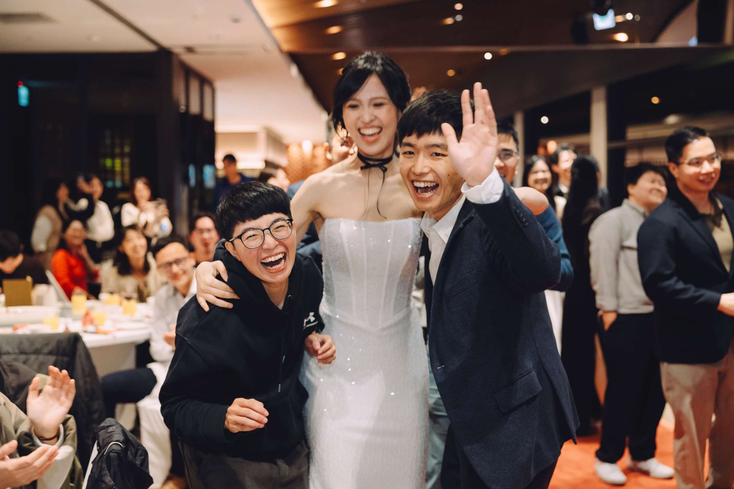 那些看起來很日常的片刻——一起笑、一起舉杯、輕輕地說話反而成了這場婚禮最重要的畫面。